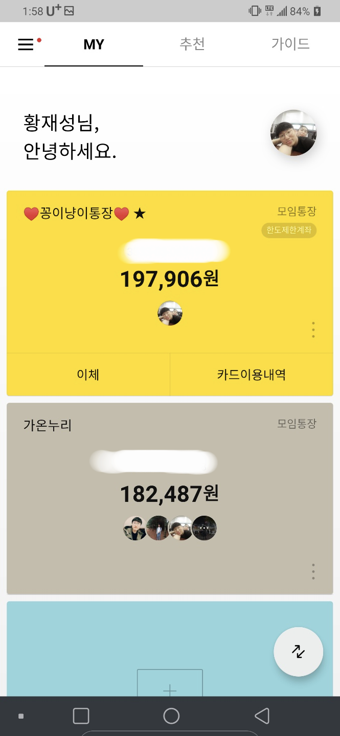 서로가 같이 돈을 넣고 같이 쓰기에는 딱 적합한 용도라 중고등학교 친구들끼리도 사용 중인 모임통장입니다.