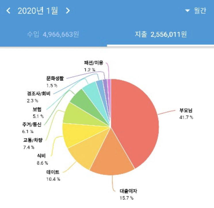 부모님 지출 항목이 큰데, 아버지 생일선물로 좀 괜찮은 걸 사드렸고, 어머니 작업할 컴퓨터를 바꿔드렸다.