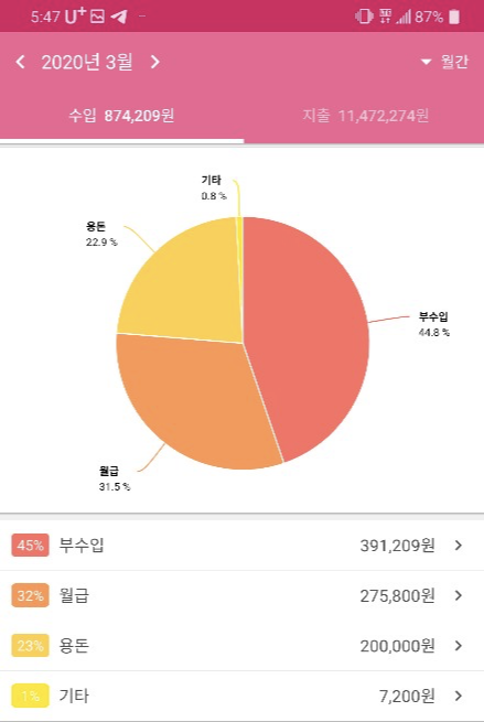 그 외에는 특별히 나간 돈이 없다.