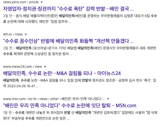 | 배민 수수료 얘기는 엄청 뜨던데 쿠팡이츠는 그냥 묻히네 ㅋㅋ (0) | 2020.04.21 |