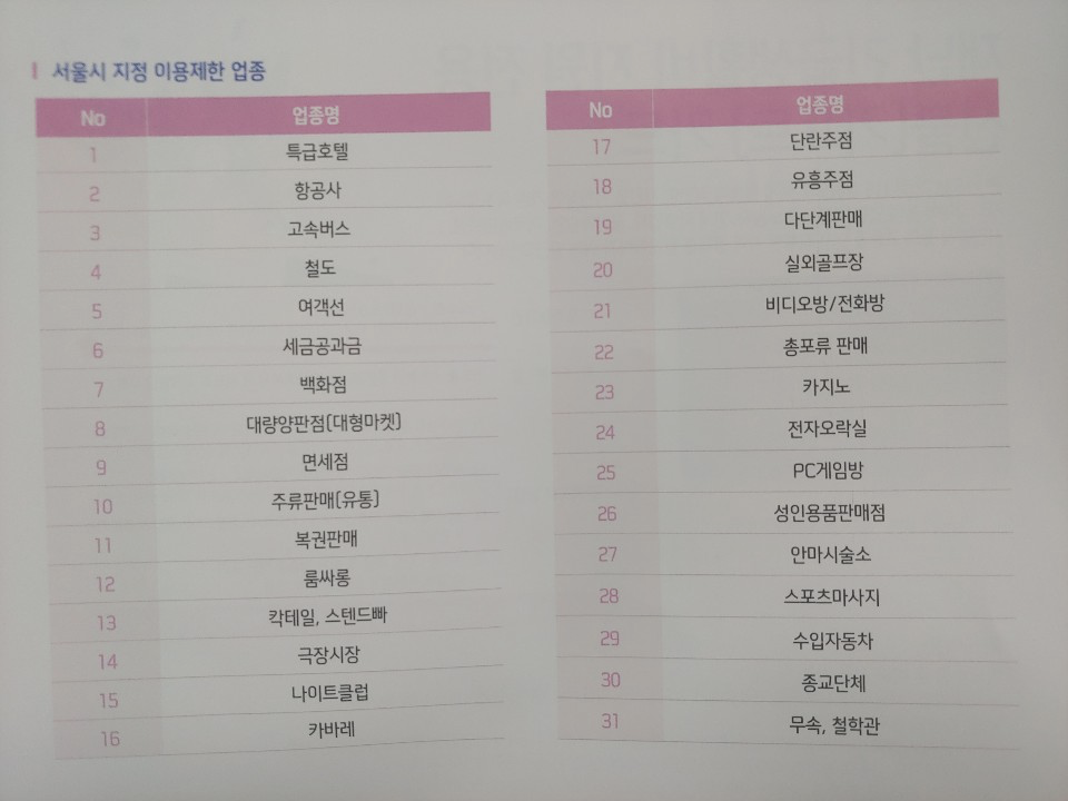 아래는 이용제한 업종이니 참고하시기 바랍니다.