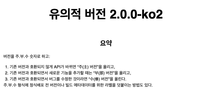 요약하면 위와 같고, 패키지 관리자가 따라야할 내용들도 같이 들어가있는데, 이걸 따른다고 했을 때 '주'버전이 바뀌지 않는 이상 Caret syntax를 썼을 때 오류가 나는 경우는 없어야할 것이다.