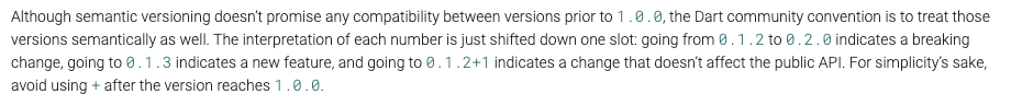 A. Semantic version관리의 일환이다. 플러터가 따른다는 버전 규칙 https://semver.org/lang/ko/ 로 가보면 한국어로도 번역이 되어있다.