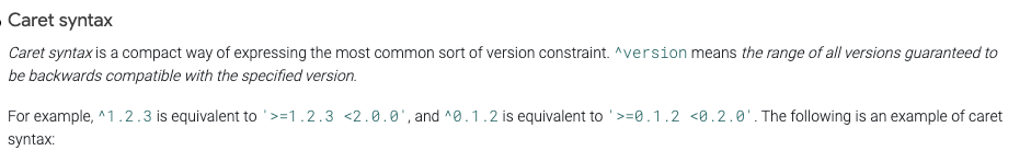 플러터팀에서는 Caret Syntax를 통해 버전관리할것을 추천(Best Practices)