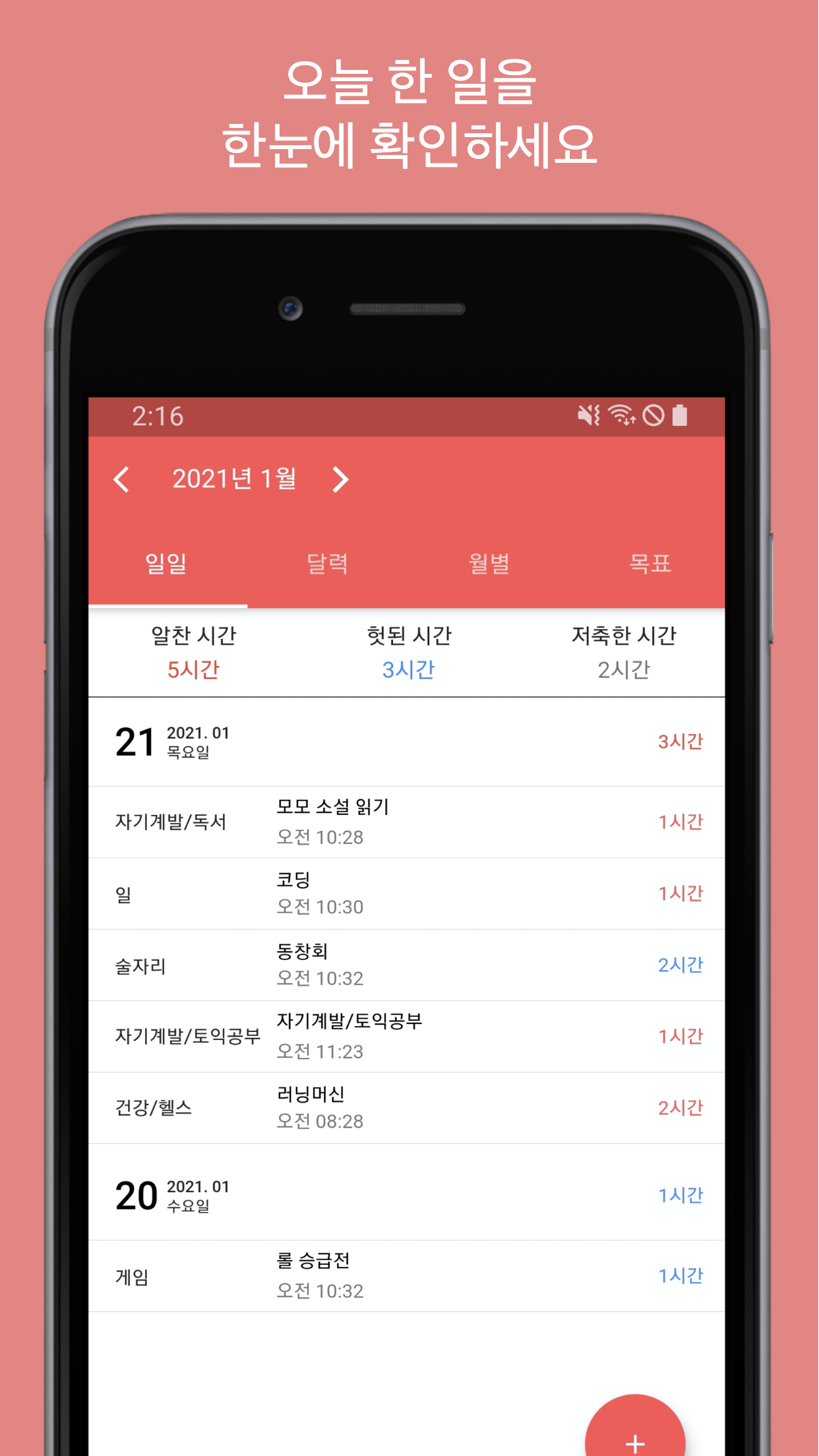 당신이 오늘 어떻게 시간을 썼는지 기록할 수 있습니다