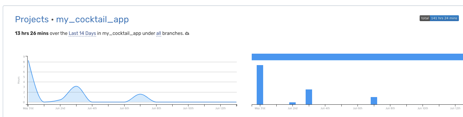 완성되고 나서 오늘 기준으로 wakaTimes로 개발 시간을 따져보니 141시간이 찍혔다.