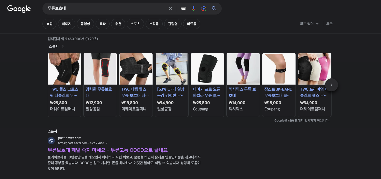 다른 브라우저로도 구글에서 무릎보호대를 검색했더니, 비슷한 내용이 되게 많이 나옵니다.
