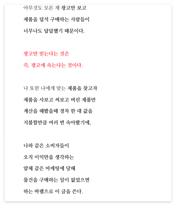 '아무것도 모른 채 광고만 보고 제품을 덥석 구매하는 사람들이 너무나도 답답할거기 때문에' 이런 글을 쓰고 있습니다.
