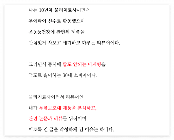 결론부에서 얘기되겠지만, 30대고 소비자일수는 있지만 마케터이거나, 해당 제품 관계자거나, 최소 해당 제품에서 어느정도 대가를 받은 글일텐데, 그 마케팅 수단에서 이런 말을 하는게 기만으로 느껴집니다.